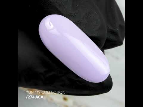 Гел лакът Acai е средно гъст препарат с избелен цвят на плода асаи. Характеризира се с отлична пигментация за такъв пастелен цвят. Acai се разнася добре и не залива кожичките. Не оставя следи от четка, което е от съществено значение при такъв полумлечен цвят. Стилистът за нокти ще постигне перфектен маникюр след нанасяне на 2 слоя от този материал със светлинна дисперсия. Лесно е да се декорира маникюр с този материал, без да се използва друг препарат. Втвърдяването под лампата отнема поне 30 секунди.