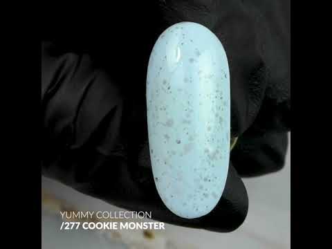 Гел лакът Cookie Monster има избелен, пастелен цвят с добра пигментация след нанасяне на 2 слоя. Благодарение на средната си плътност, той се изравнява добре и не залива кожичките. Разсейването на светлината позволява използването на допълнителни декорации. Опитен стилист за маникюр ще стилизира ноктите, без да оставя следи от четка по повърхността на материала, като съществена част от полумлечните цветове. Гел лакът Cookie Monster съдържа холографски брокатени фолиа в различни размери и черен пясък. Стилизирането на маникюра придава Oreo ефект в 3D. Изпичането под лампата отнема около +30 секунди.