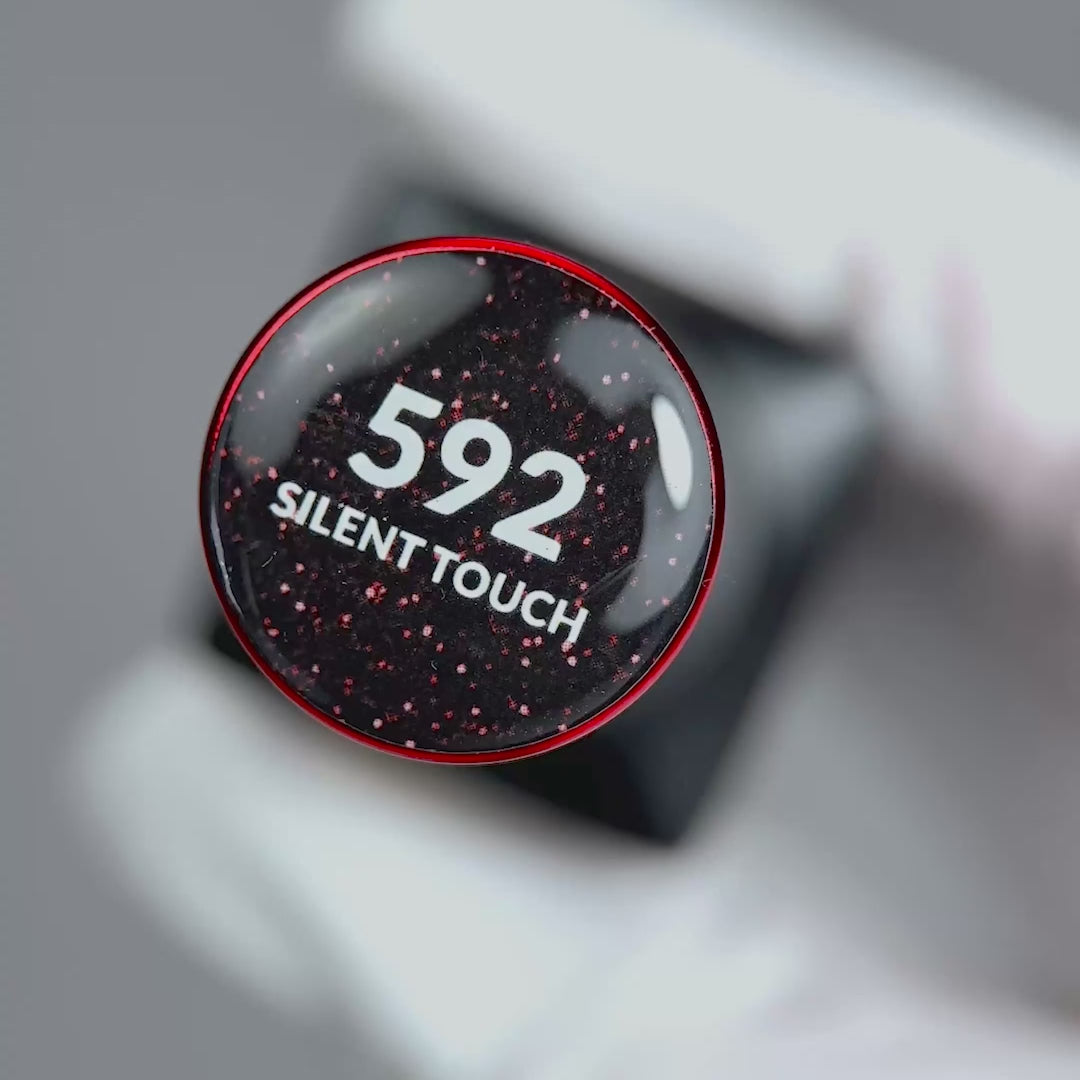 592 Silent Touch от Slowianka Nail Trends е наситена, почти черна основа с фини червено-бордо частици, които създават елегантен, приглушен блясък. Нюансът е мистериозен, изискан и изключително стилен - идеален за вечерни визии и минималистични дизайни с характер. Частиците нежно отразяват светлината, придавайки луксозен ефект без прекомерна екстравагантност. Silent Touch предлага отлично покритие, нанася се равномерно и изглежда красиво както като самостоятелен цвят, така и в елегантен ноктопластика.