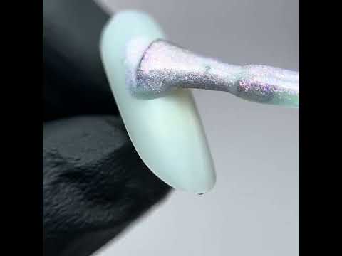 Гел лак № 63 в нюанси на виолетово, лавандулово и холографско сребристо, със зелени и виолетови подтонове. Необходим ви е само един продукт, за да направите изключителна декорация.