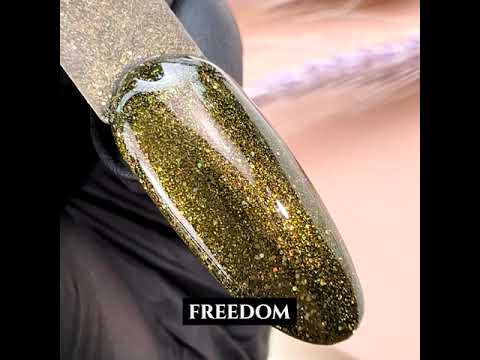 Гел лакът "Freedom" е в приглушен, топъл, тъмнозелен цвят с нотка златист. Този цвят е оживен от малки частици брокат в златно, сребристо, синьо и оранжево. Различният размер и цвят на частиците карат този продукт да блести по различен начин (в зависимост от ъгъла на светлината). Този ефект се нарича „брокатени хамелеони“.