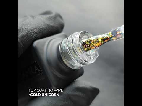 Топ лакът No Wipe Unicorn Gold има всички предимства на топ лака No Wipe: устойчив е на механични повреди, не се напуква и не се изтрива, образува идеално гладък слой върху всякакъв вид стилизиране на ноктите. Освен това придава на всеки маникюр красивия блясък на златиста, хамелеонова кожа. Нюансът на блясъка се променя в зависимост от нюанса на гел лака - светъл, топъл, тъмен или черен.